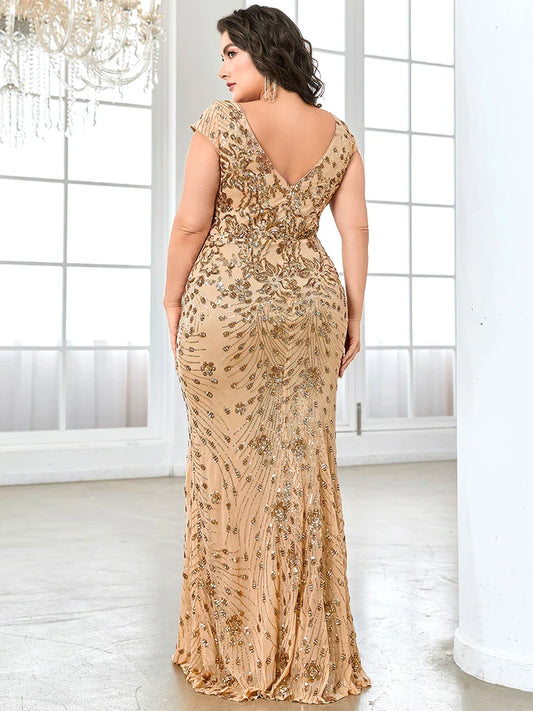Sequin Embroidery Champagne Evening Dress Women Plus Size Long Guest Wedding Party Dresses Luxury Prom Gowns Formal