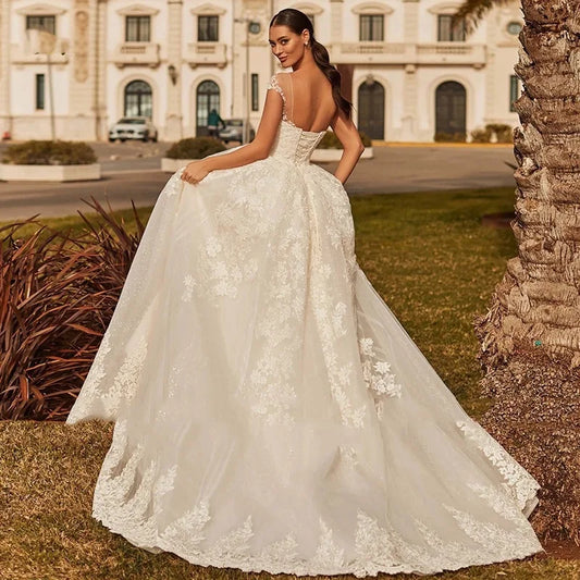 Sexy Backless Vestidos De Novia Appliques Vestido De Noiva Cap Sleeve Wedding Dresses Lace Robe De Mariée