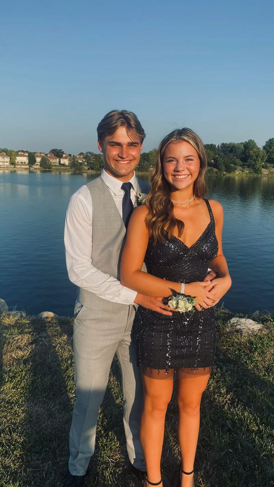 Sexy Black V-neck Sequined Sleeveless Homecoming Dress