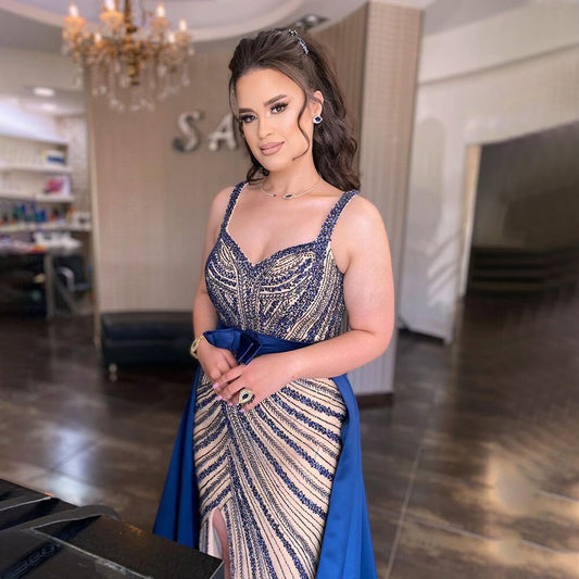 Sexy Blue Mermaid Detachable Skirt Sweetheart Beaded Luxury Arabic Party Dresses Formal Women Evening 2025 LA71786