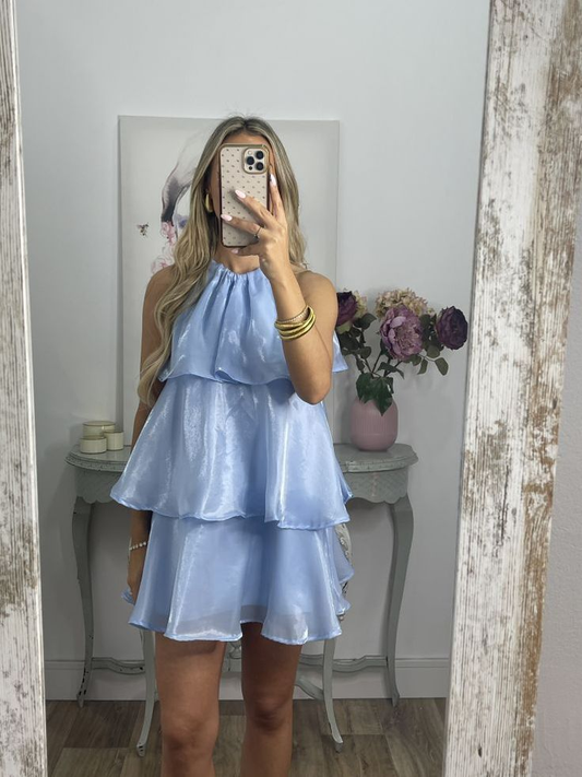 Simple Blue Organza Halter Layered Mini Prom Dress Homecoming Dress Y8089