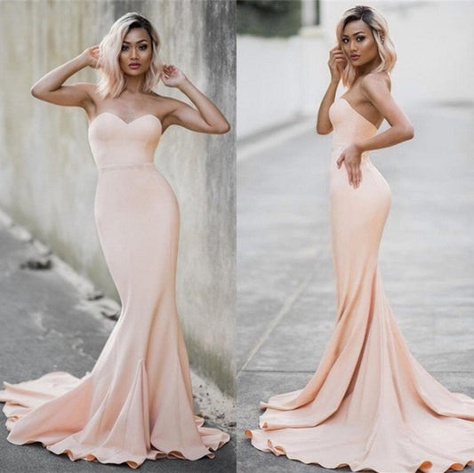 Simple Chiffon Bridesmaid Dresses Mermaid Sweetheart Neck Prom Dresses