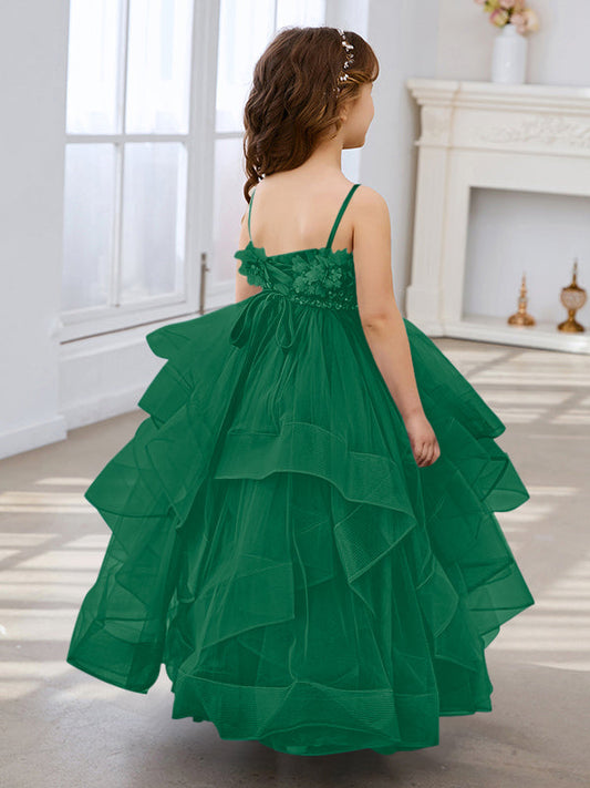 Slate Blue A-Line Princess Sleeveless Tulle Flower Girl Dress