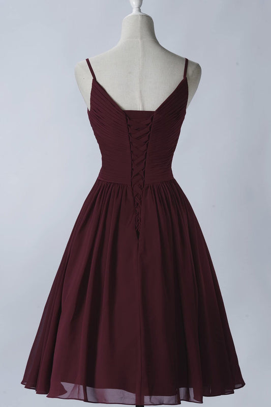 Spaghetti Straps Sleeveless A Line Chiffon Short Prom Dresses With Pockets
