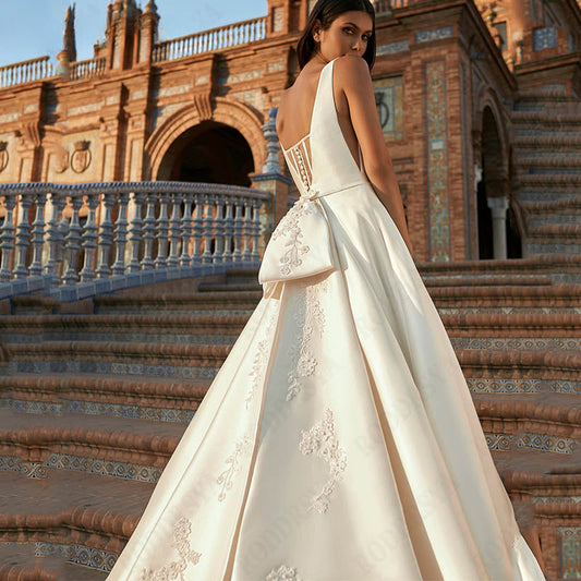 Spaghetti Straps V-Neck Vestido De Novia Sleeveless Appliques Satin Bride Party Backless A-Line Wedding Dress For Women