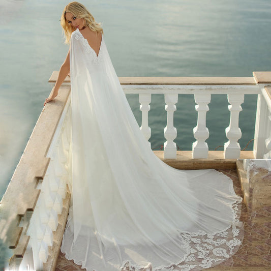 Spaghetti Straps White Lace Chiffon Beach Elegant Wedding Dressess