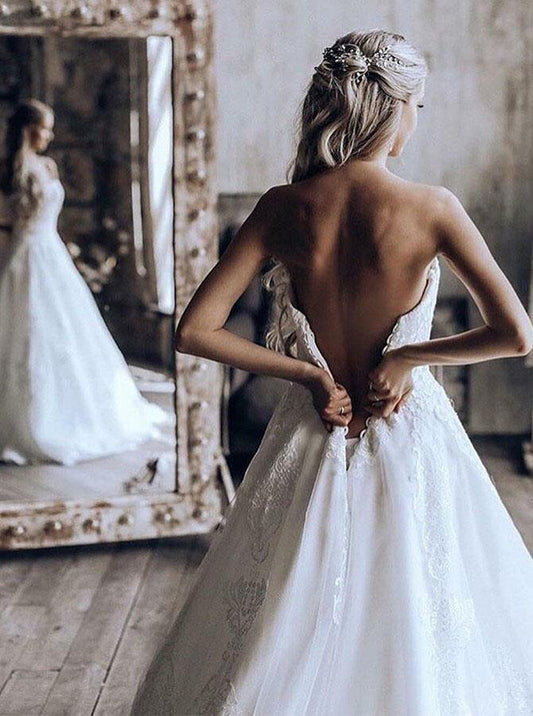 Sweetheart A-line Wedding Dresses Tulle Appliqued Gowns WD466