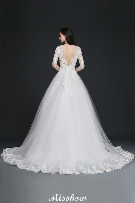 V-Neck Ball Gown Lace Tulle Wedding Dresses