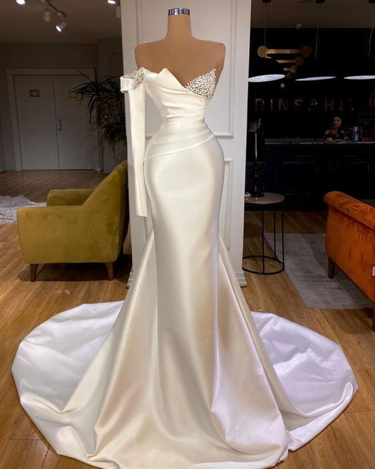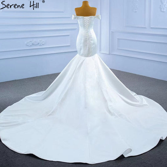 White Satin Mermaid Wedding Dresses Gowns Elegant Pearls Beaded Sexy Bridal Dress 2025 HM67285