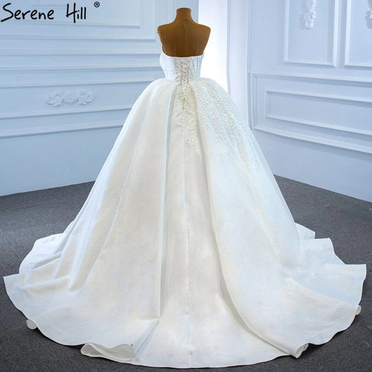 White Sexy Strapless Lace Up Luxury Beaded Pearls Bride Gowns Wedding Dress 2025 High End Custom Made HM67472