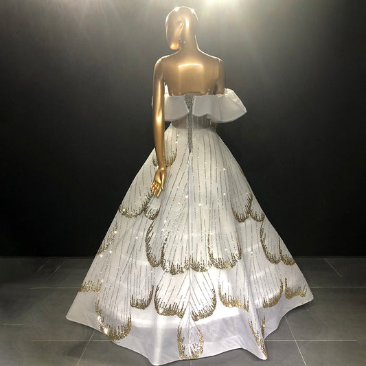 Women Clothing Sequined One Shoulder Dress Waist Slimming Shoulder Sleeveless Party Cocktail Evening Dress