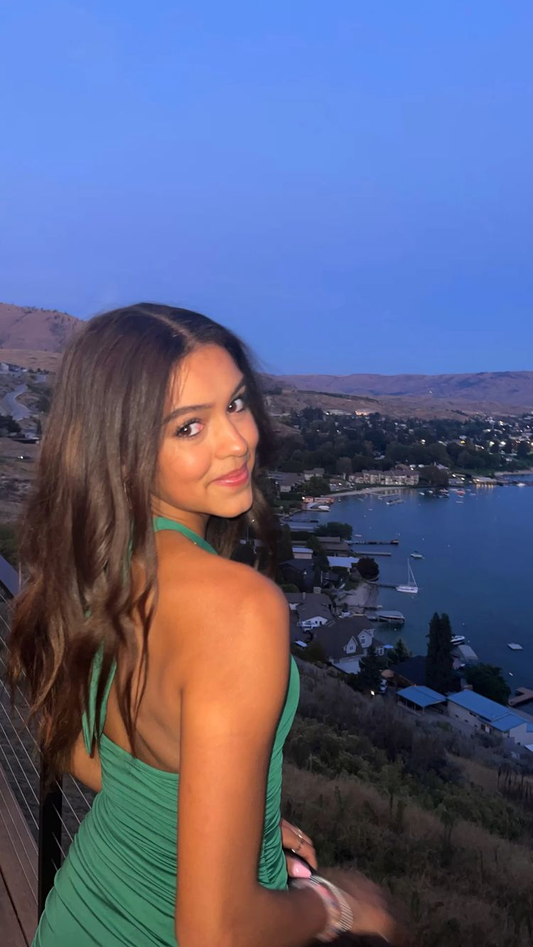 Women Close-Fitting Solid Color Dress Halter Neck Sleeveless Sexy Green Homecoming Dress Y2659