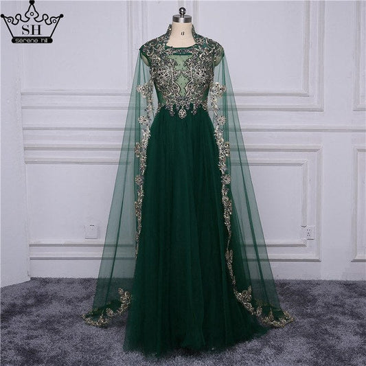 With Cap Embroidery Crystal Evening Dresses Long Fashion A-Line LA6402