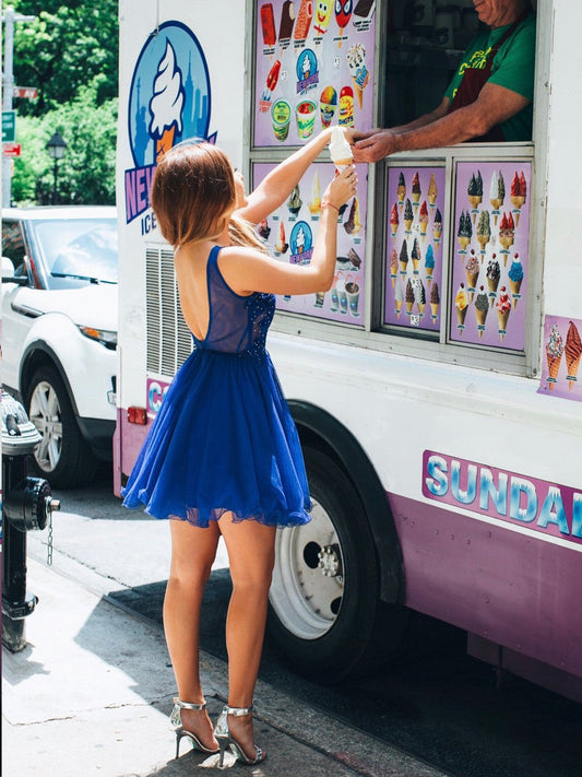 Chic Short A-Line Tulle Open Back Lace Homecoming Dress