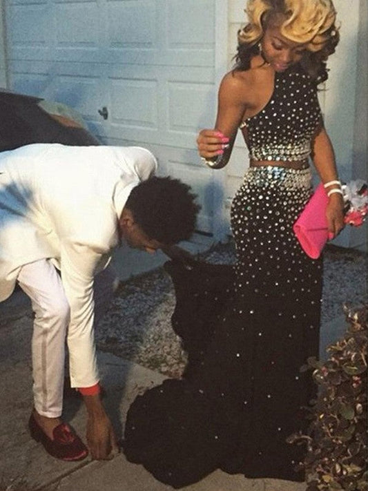 Gorgeous Mermaid Sweetheart Sleeveless Tulle Beading Two Piece Prom Dresses