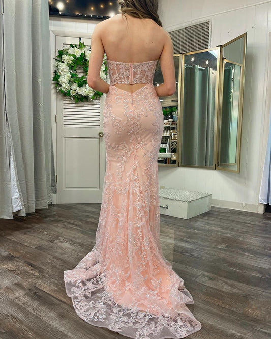 Mermaid Sweetheart Sequined Lace Long Prom Dress