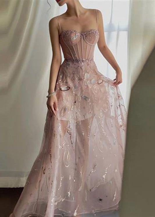 Pink Tulle Long Prom Dresses Sweet A-Line Evening Dresses Y6591