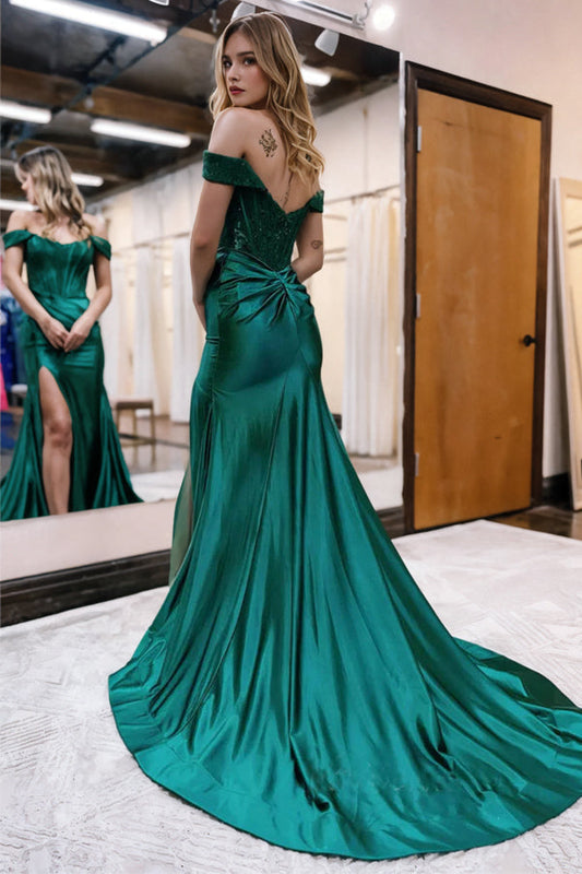Satin Lace Mermaid Off Shoulder Long Prom Dress