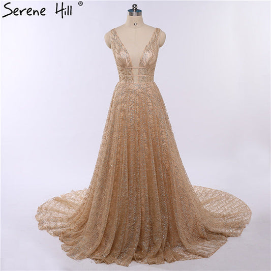 On Sale no return no refund Sale Champagne Transparent Sexy Mermaid Evening Dress Sleeveless Sequined Tulle Evening Gowns 2025 LA6156