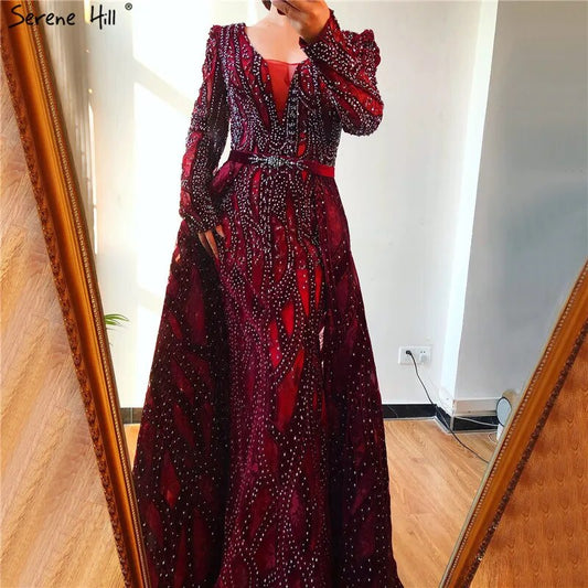 Dubai Gray Mermaid Elegant Lace Crystal Beaded Luxury Evening Dresses Gowns For Women Wedding Party 2025 LA72516