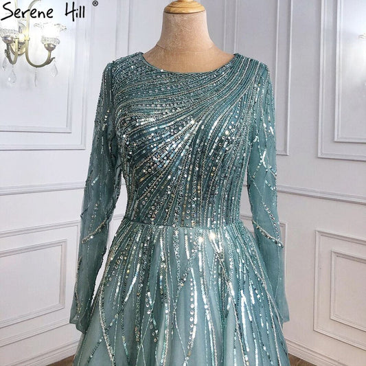 Moslim Groen Luxe Avond Jurken 2025 Kralen A-lijn Voor Vrouw Wedding Party LA71021L