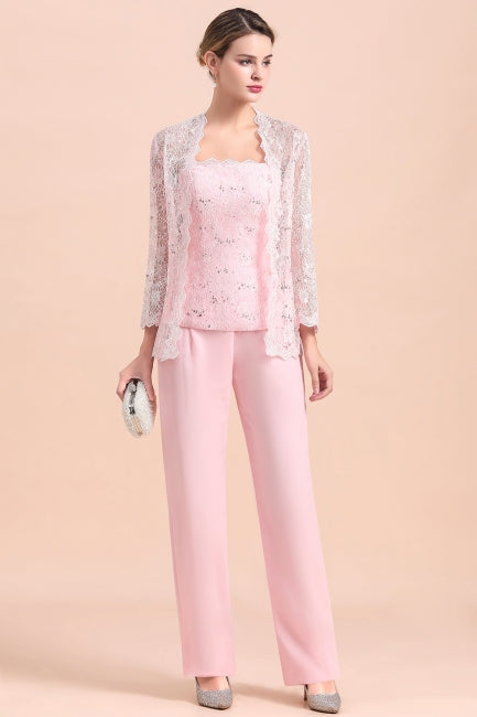 Jumpsuit/Pantsuit Separates Scoop Floor-Length Chiffon Lace Mother of the Bride Dress With Sequins
