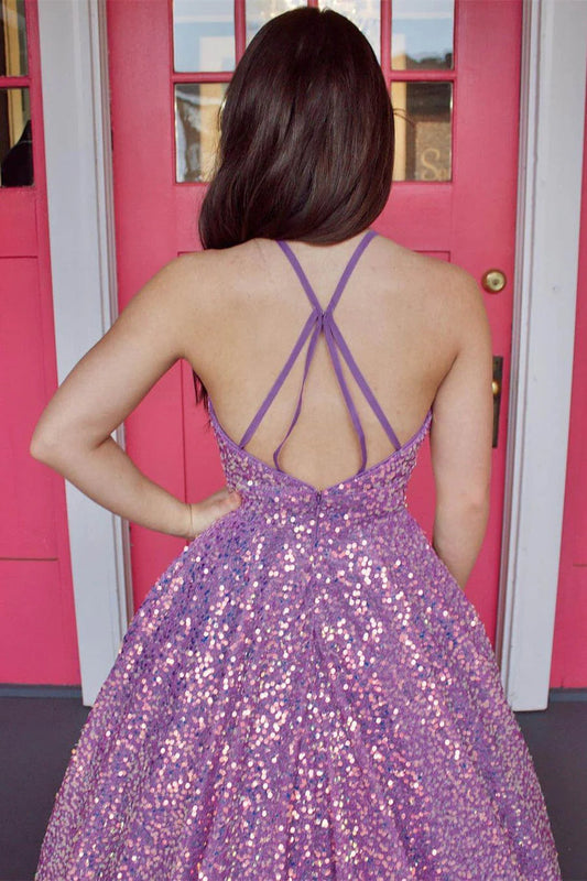 Glitter Sequin Prom Dress with Slit Scoop Neck Prom Dress SYP171