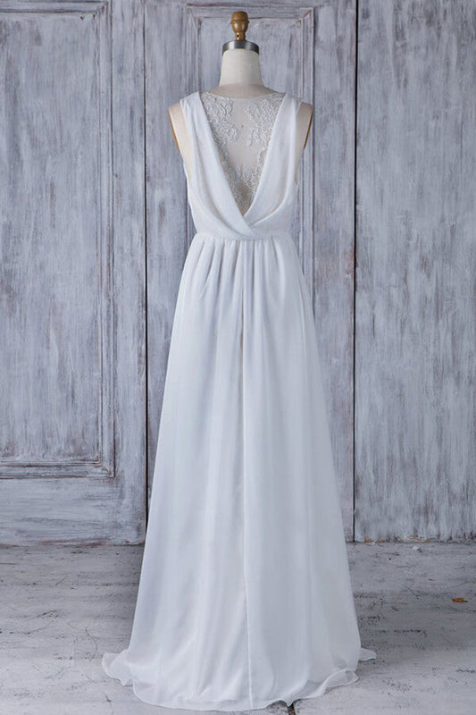 Awesome Long A-line V-neck Lace Chiffon Open Back Wedding Dress