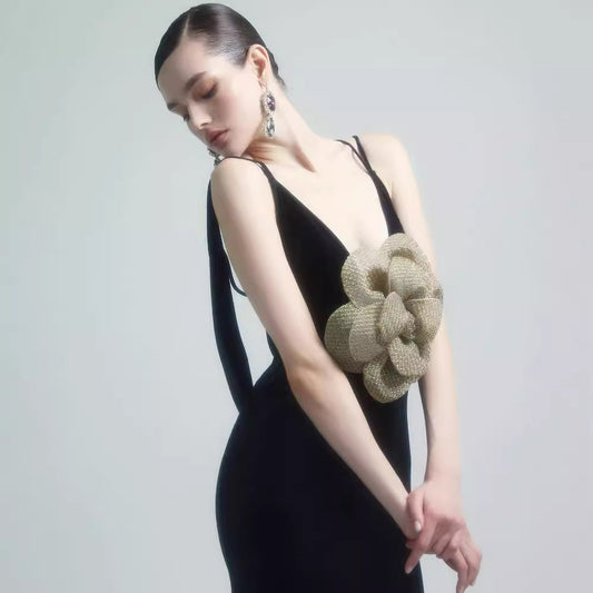 Dayana | Langes, trägerloses Ballkleid aus 3D-Blumenspitze mit abnehmbaren Ärmeln
