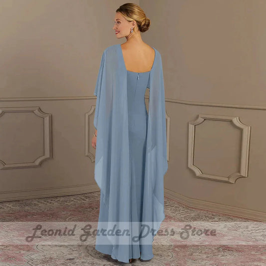 Elegantes blaues Meerjungfrau-Abendkleid mit Cape-Ärmeln LA72200