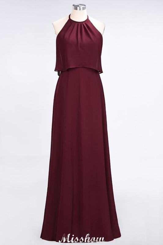 A-Linie Chiffon Neckholder Geraffte Schärpe High Low Brautjungfernkleider BD016