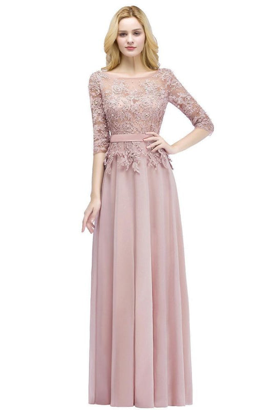 A-line Floor Length Half Sleeves Appliques Bridesmaid Dresses with Sash