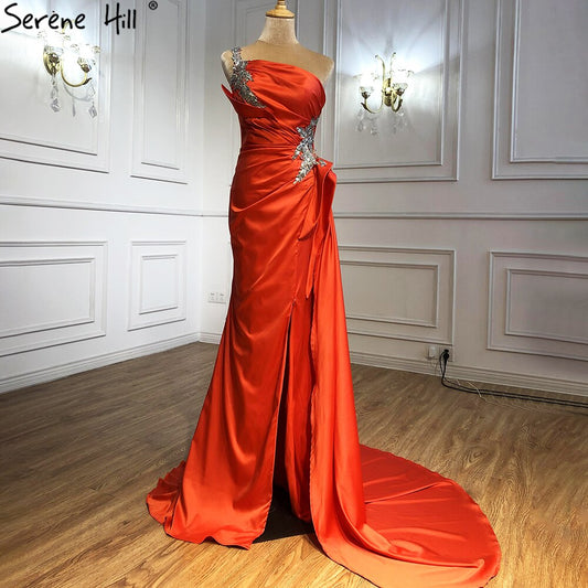 Orange High Split Meerjungfrau Abendkleider Kleider 2025 Eine Schulter Elegante Sexy Für Frauen Party LA70896