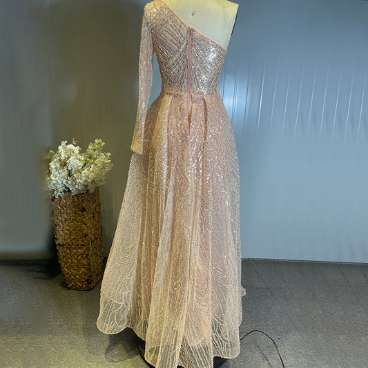 Pfirsich Meerjungfrau Elegantes Kleid 2025 Kralen Luxe Overrok Für Frauen Party LA71527