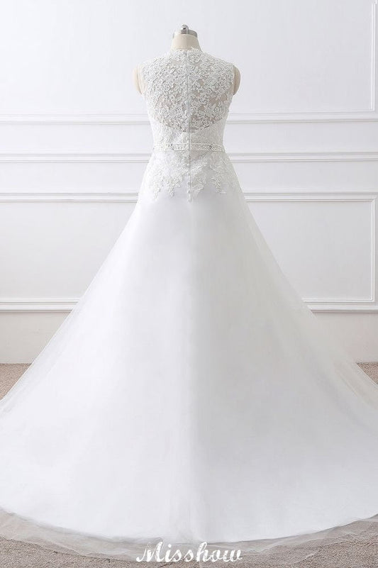 Elegantes Prinzessinnen-Brautkleid aus Spitze mit V-Ausschnitt und Tüll