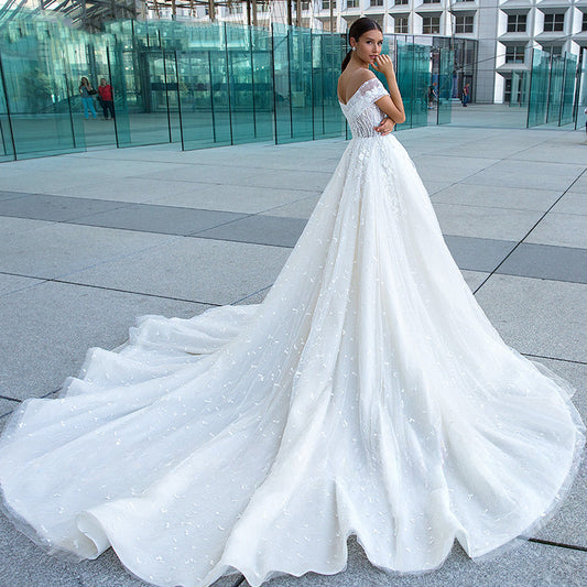 Sexy Schatz Spitze Brautkleider Damen V-Ausschnitt Aufkleber Prinzessin Hochzeit Formale Party 2023 Off Schulter Perlen Romantische Braut