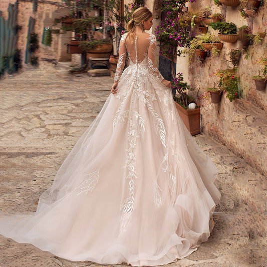 Sexy V-Ausschnitt Applique Brautkleid Spitze 2023 Illusion Langarm A-Linie Prinzessin Brautkleid Böhmen Vestido De Noiva Damen