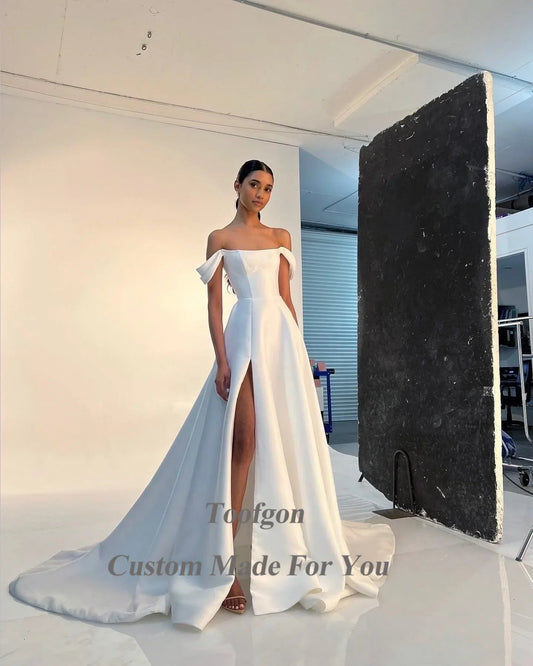 Einfache A-Linie Satin Braut Brautkleider Trägerlos High Split Brautkleid Frauen Formale Besondere Party Brautkleider