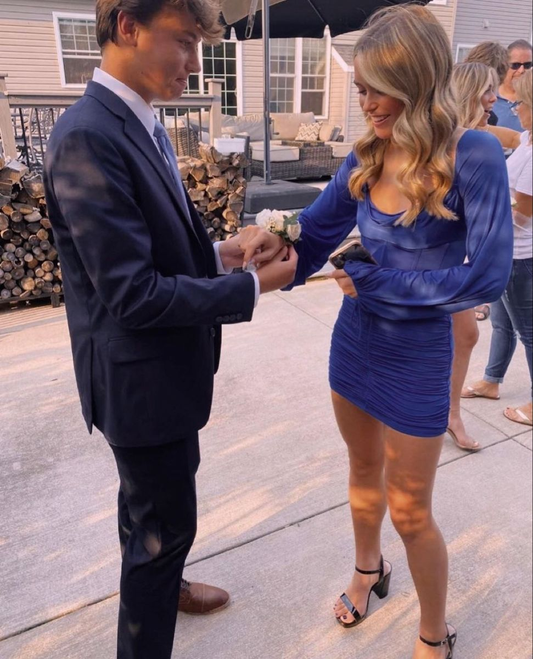 Damen Minikleid, Elastisches Kleid mit Ellenbogenärmeln, Figurbetontes Kleid, Kurzes Homecoming-Kleid Y651
