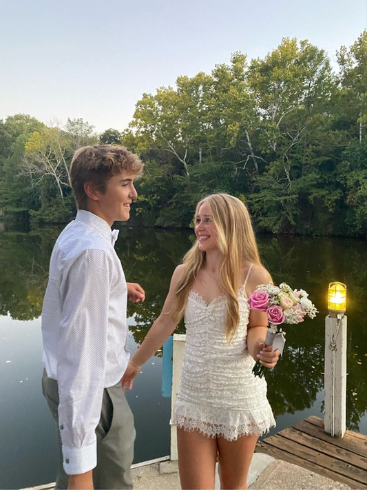 Weißes Homecoming-Kleid mit Spaghettiträgern und Spitze für Damen Y4078