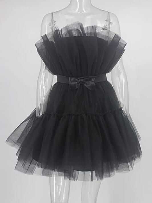 Damen Tüll Prinzessin Minikleid Rüschen Mesh Party Ball Hochzeit Tutu Fee Kleid Schwarz Homecoming Kleid Y512