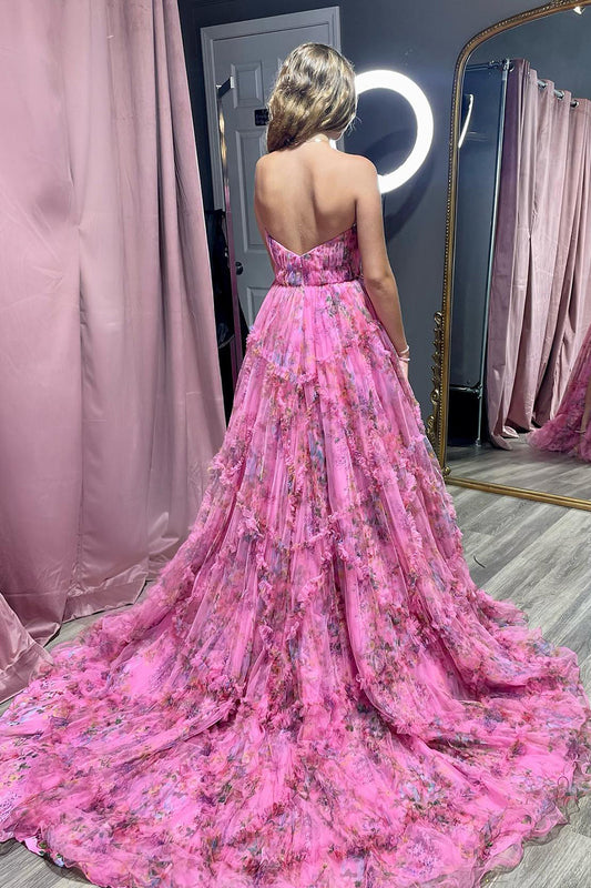 Izabella | A-Linien-Ballkleid aus Tüll mit Herzausschnitt und Blumenmuster und Schlitz