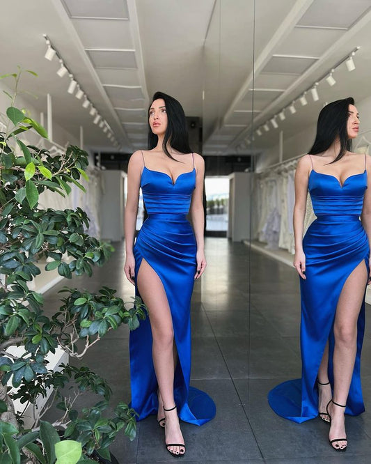 Sexy königsblaue Meerjungfrau-Ballkleider mit Spaghettiträgern und Schlitz