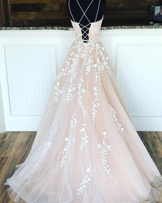 Langes A-Linien-Kleid aus Spitze und Tüll für formelle Abschlussfeiern, Abend- und Ballkleider