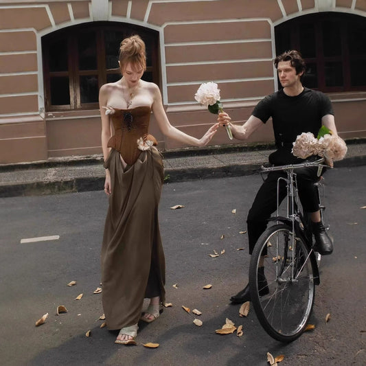 Vintage Sexy Boned Waist Strapless Prom Dress