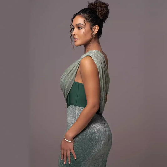 One-Shoulder Pleated Satin Party Prom Dress