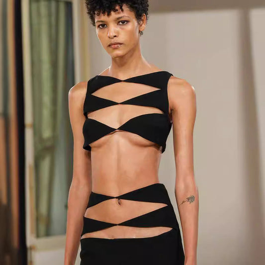 Chic Hollow-Out Two-Piece Bandage Dress Red Carpet Prom Dress