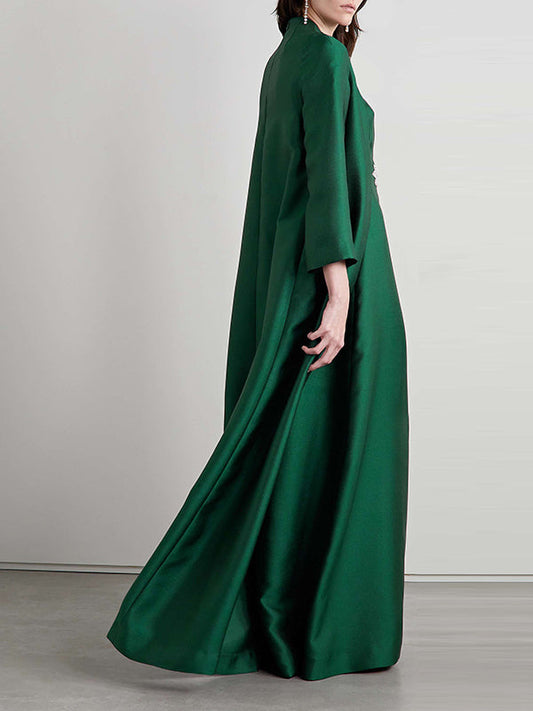 Embroidered Solid Color Long Sleeves Loose Evening Dresses