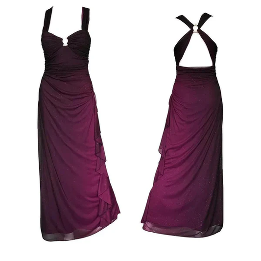 Ombre Traubenlila Chiffon Rückenfreies Abendkleid Langes Party-Ballkleid Y7482