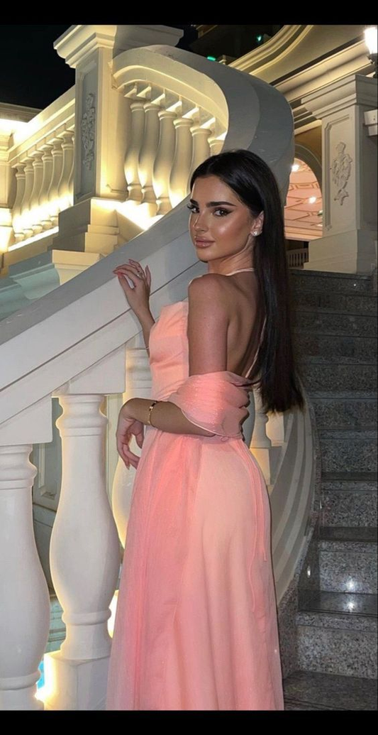 Sexy Neckholder Ärmellos Rosa Langes Ballkleid Party Abendkleid Y7523